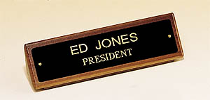 Solid American Walnut Desk Easel. 8.5" x 2.125". Comes standard with Black Brass name plate, engraves gold. Gold name plate optional at no additional cost. Laser engraved.